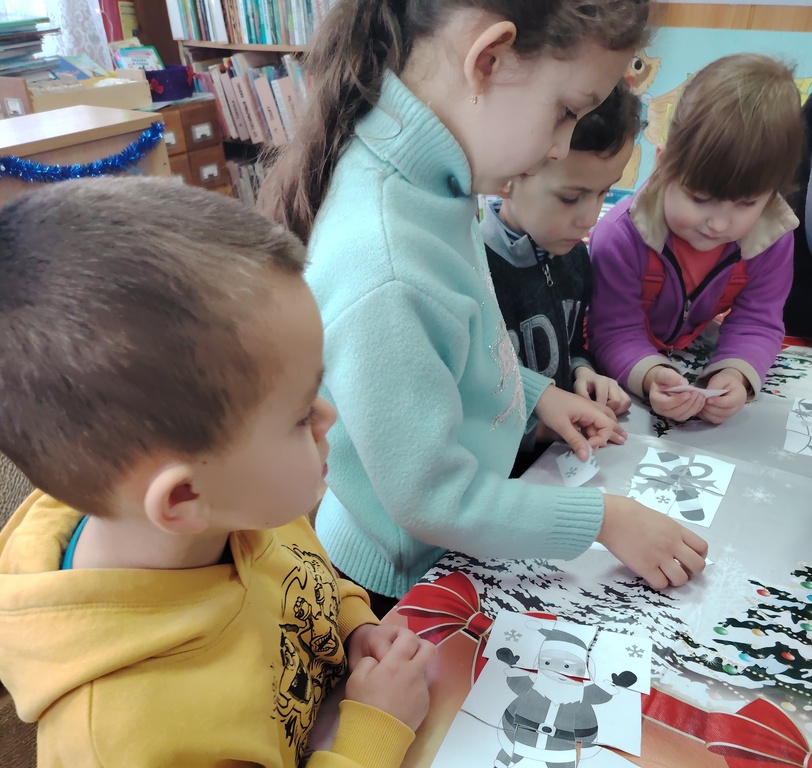 Дети читали новогодние стихи, с интересом складывали пазлы, а также познакомились с книгами, представленными на книжной выставке «Новогодние огни приглашают в сказку».