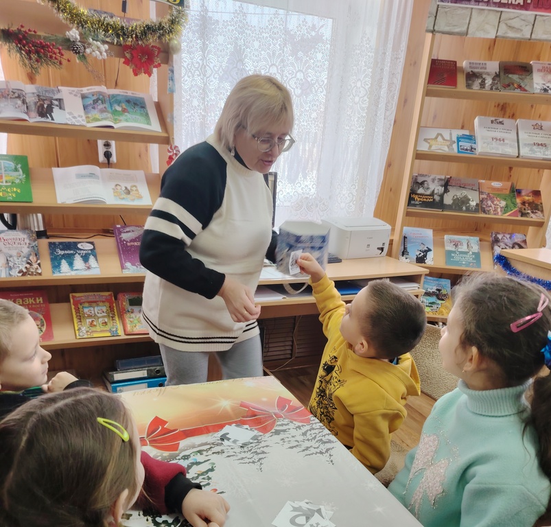 Библиотекарь Наталья Егорова рассказала дошкольникам об истории Нового года и рождественских праздников, о том, как их празднуют в различных странах.