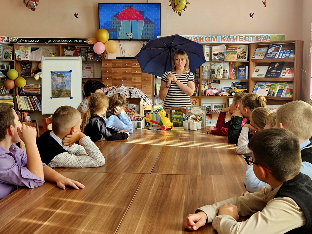 30 сентября в детско-юношеском отделе центральной районной библиотеки в рамках литературно-художественного проекта «Литературная арт-мастерская «12 месяцев» для учащихся 4 «А» класса средней школы им. М.В.Октярьской г.п.Лиозно состоялась книжная встреча «Кто под зонтиком стоит?».