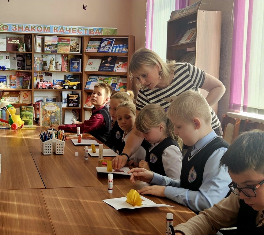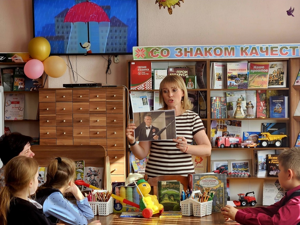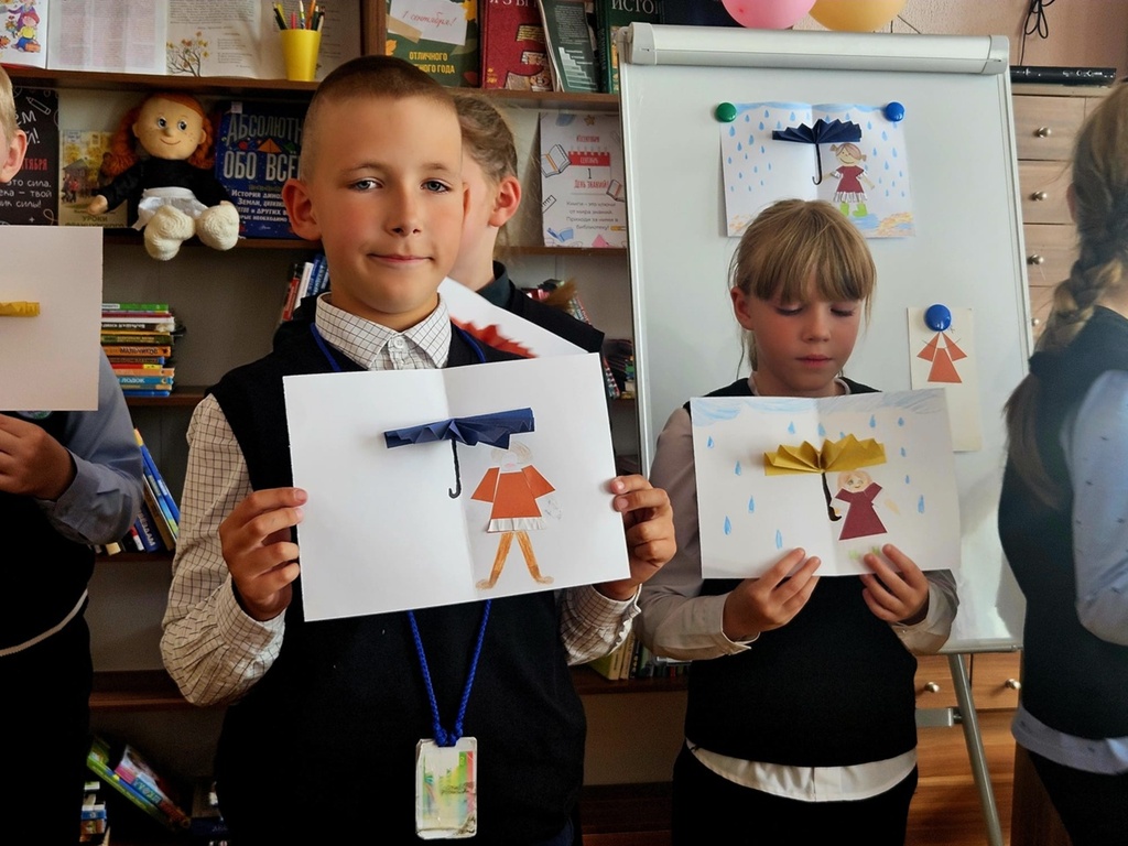 С героем книги Ирины Токаревой, сыщиком Хомсом, ребята узнали, как появился зонт в дождливой Англии, и что белорусское слово «парасон» попало к нам из далекой Франции, а также познакомились с известной картиной французского художника Клода Моне «На прогулке». Школьники с интересом разгадывали ребусы, узнали о правилах техники безопасности при использовании автоматических зонтов, в завершении мероприятия изготовили объёмные открытки с изображением зонтика.
