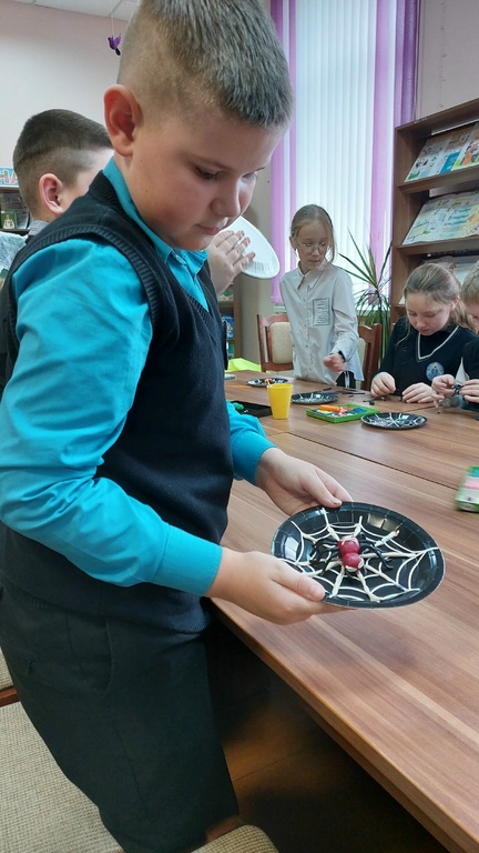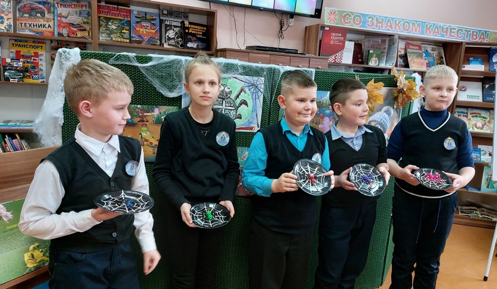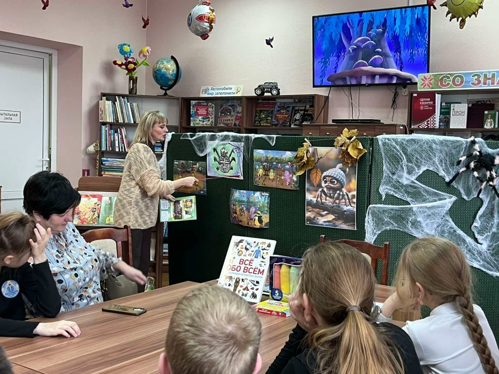 11 ноября в детско-юношеском отделе центральной районной библиотеки в рамках литературно-художественного проекта «Литературная АРТ-мастерская «12 месяцев» для учащихся 4 «А» класса средней школы им. М.В.Октябрьской проведено библиоужастик «Жил на свете паучок-добрячок».