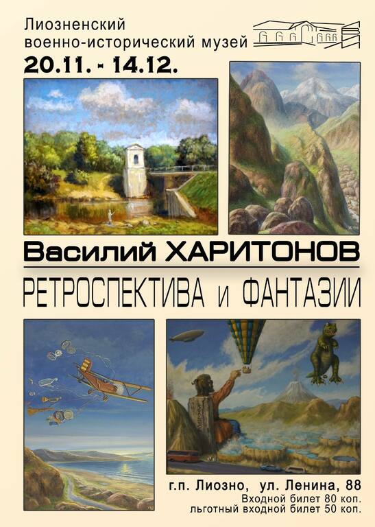 20 ноября в Лиозненском военно-историческом музее местные самодеятельные поэты и руководитель народной литературной студии «Под абажуром» центральной районной библиотеки Елена Бахмацкая приняли участие в открытии выставки нашего земляка Василия Харитонова «Ретроспектива и фантазии».