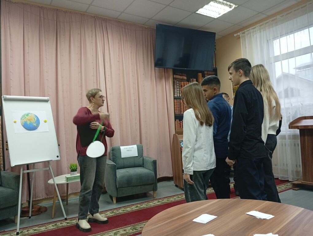 К Международному дню борьбы со СПИДом в центральной районной библиотеке для девятиклассников базовой школа им. И.А.Авекова проведён SOS-час с элементами тренинга “Выбирай разумную жизнь”.