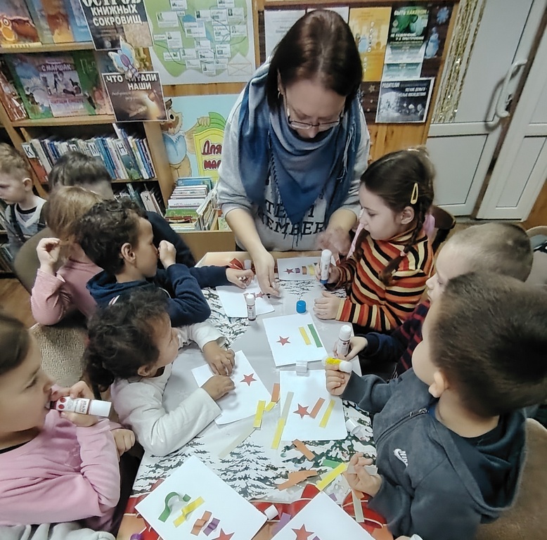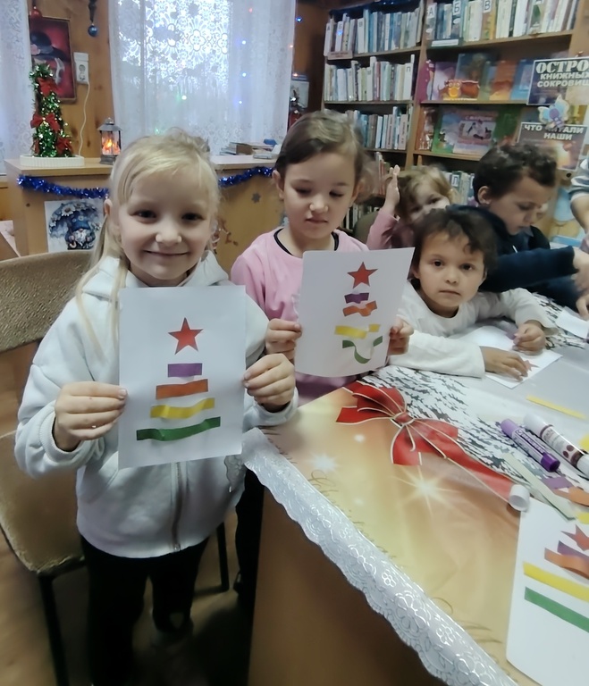 Дети отгадывали загадки о новогоднем празднике, играли в викторину «Верю – не верю», в завершении в подарок Деду Морозу мастерили ёлочку, а в качестве награды получили письма для заказов подарков у Деда Мороза