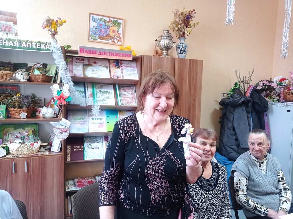 Руководитель клуба Наталья Иванова рассказала о достижениях его участников в уходящем году, познакомила с традициями встречи Нового года. Участники клуба представили поделки новогодней тематики, активно участвовали в викторинах и конкурсах.
