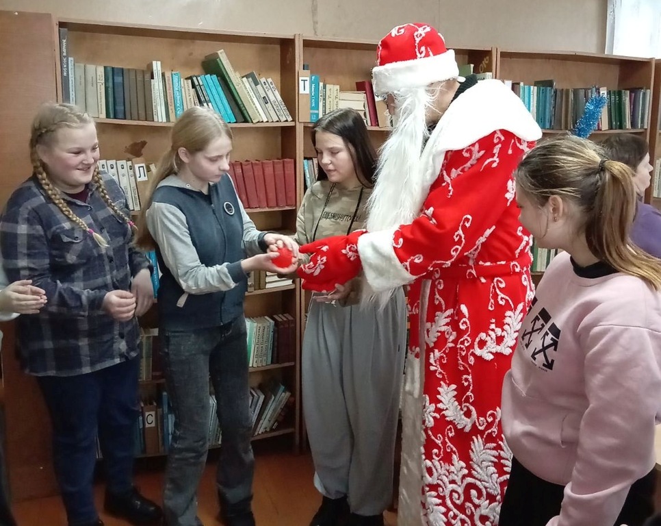 Библиотекарь Татьяна Москалёва познакомила школьников с историей праздника, с новогодними традициями разных стран. Дети играли, веселились, участвовали в конкурсах, а в конце мероприятия Дед Мороз угостил всех конфетами.