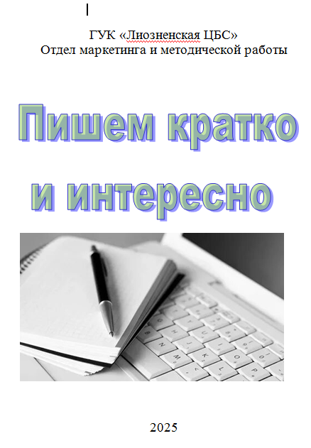 Пишем кратко и интересно: Методические рекомендации по написанию новостных текстов для сайта: Методическое издание / ГУК «Лиозненская ЦБС», отдел маркетинга и методической работы [cост. Ж.И.Иванова] – Лиозно, 2025. – 12 с.