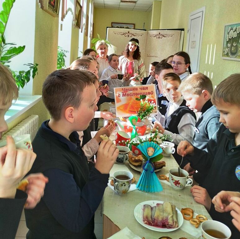 Руководитель студии Наталья Иванова рассказала школьникам об истории праздника, об обычаях празднования Масленицы, о том, что означает каждый день Масленичной недели. Ребята играли в народные игры, отгадывали загадки, с удовольствием пили чай с румяными, аппетитными блинами.
