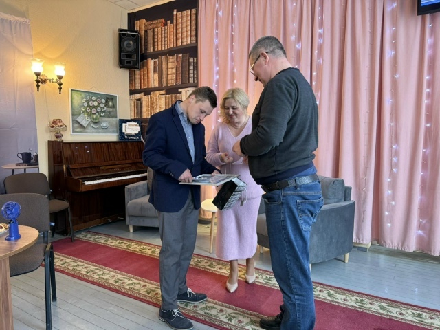 10 апреля в центральной районной библиотеке руководитель и участники народной студии литературного творчества "Под абажуром" совместно с сотрудниками и посетителями отделения дневного пребывания ТЦСОН Лиозненского района поздравили Влада Якубова с днём рождения.
