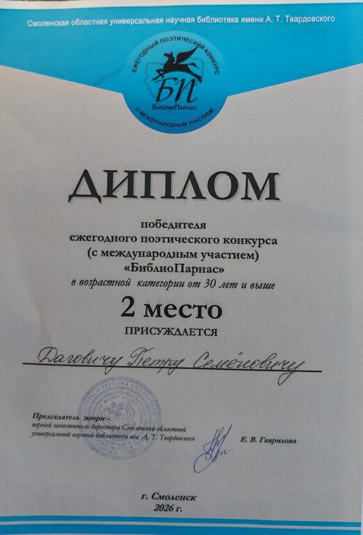 22 апреля представители народной студии литературного творчества «Под абажуром» центральной районной библиотеки приняли участие в ежегодном международном поэтическом конкурсе «БиблиоПарнас-2026», который проходил в Смоленской областной универсальной научной библиотеке имени А.Т. Твардовского.
