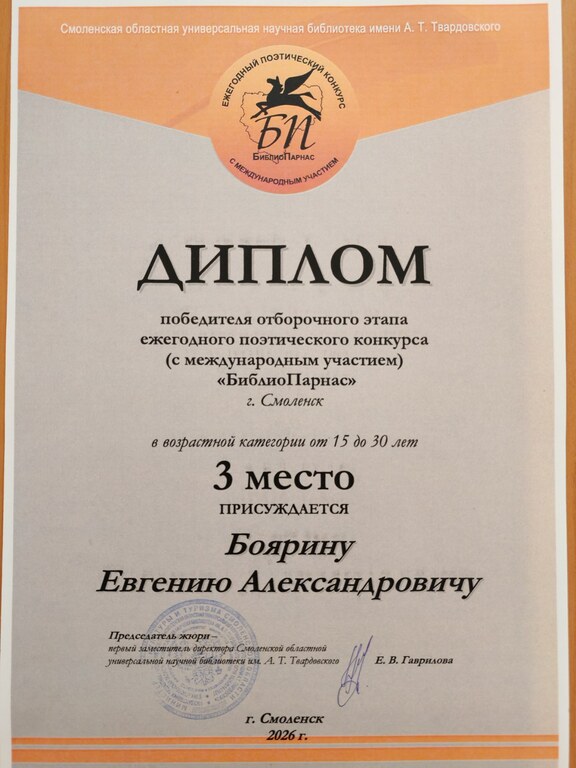 22 апреля представители народной студии литературного творчества «Под абажуром» центральной районной библиотеки приняли участие в ежегодном международном поэтическом конкурсе «БиблиоПарнас-2026», который проходил в Смоленской областной универсальной научной библиотеке имени А.Т. Твардовского.
