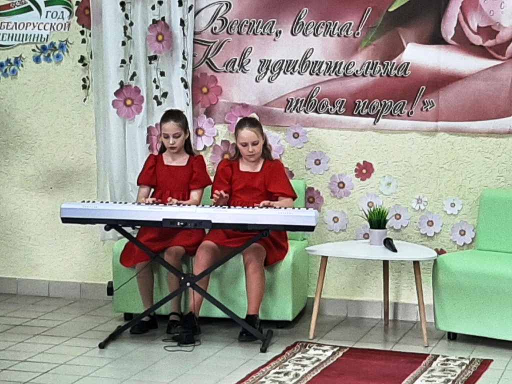 На протяжении вечера звучали стихи и музыкальные композиции в исполнении участников народной студии литературного творчества «Под абажуром», сотрудников клубной системы. Особым украшением программы стал фортепианный дуэт учащихся детской школы искусств – Ксении Малиновской и Полины Кальмаковой.