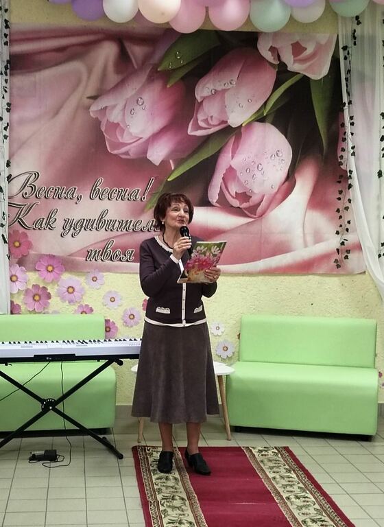 Ведущая мероприятия Елена Бахмацкая, руководитель народной студии литературного творчества «Под абажуром», в своём выступлении отметила важную роль женщины в современном мире.