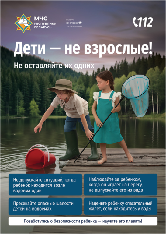 Чтобы привлечь внимание родителей к существующей социальной проблеме Научно-исследовательским институтом пожарной безопасности и проблем чрезвычайных ситуаций МЧС Беларуси при поддержке Представительства Детского Фонда ООН (ЮНИСЕФ) в Республике Беларусь разработана новая информационная кампания «Дети – не взрослые! Не оставляйте их одних!», реализация которой станет новым подходом в решении этой непростой задачи.