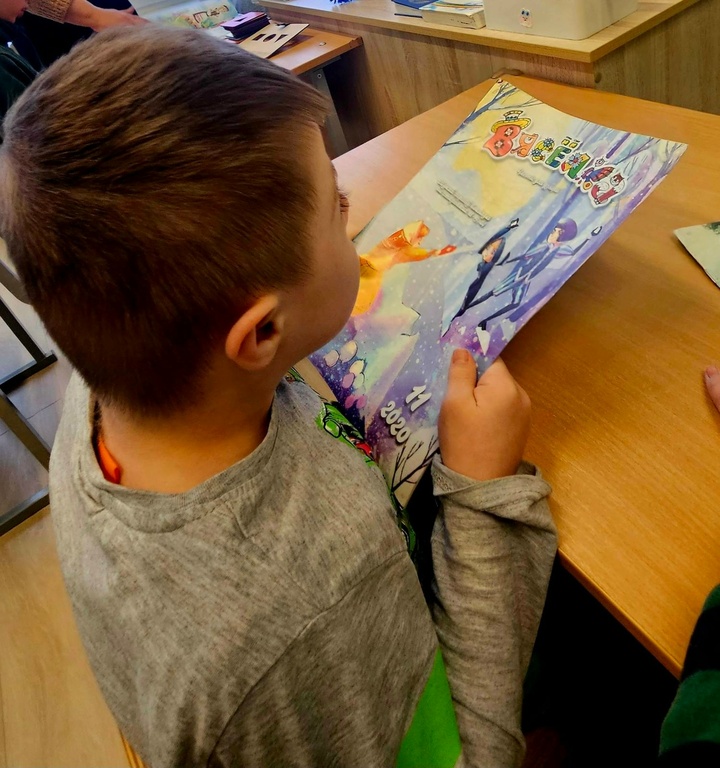 Загадчык аддзела Наталля Крыж-Марцецкая пазнаёміла вучняў са старэйшым дзіцячым часопісам “Вясёлка”, які ў 1957 годзе прыдумаў беларускі пісьменнік Васіль Вітка. Дзеці гарталі часопіс, слухалі вершы на роднай мове, знаёміліся с “Азбукай Васі Вясёлкіна”, у заканчэнні мерапрыемства склалі пазл з малюнкам нашай краіны і атрымалі ў падарунак ад бібліятэкі цікавыя кніжкі-раскладушкі.