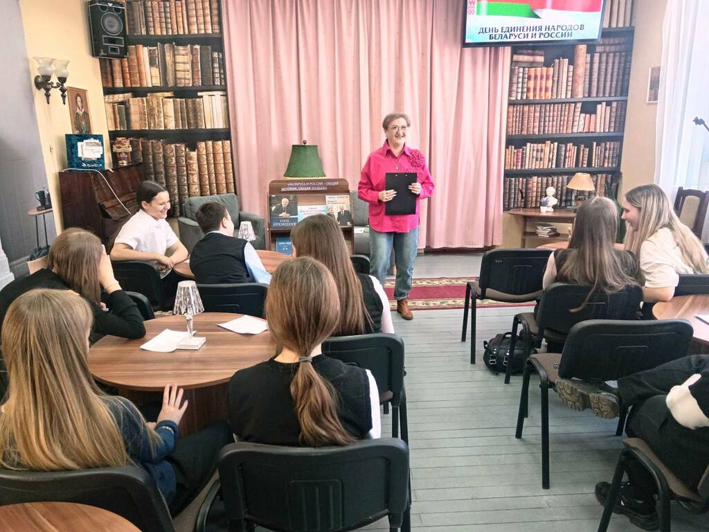 Заведующий отделом Наталья Крыж-Мартецкая рассказала об истории развития космонавтики, о космических кораблях и загадках Вселенной, о первом лётчике-космонавте Юрии Алексеевиче Гагарине, а также о первой белорусской женщине-космонавте Марине Василевской. Ребята активно принимали участие в игре «Планеты солнечной системы», отвечали на вопросы викторины «А знаете ли вы?»
