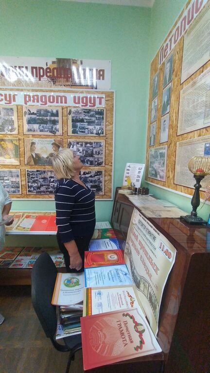 В отделе обслуживания и информации учащиеся 8 класса говорили о сохранении традиций, исторического и трудового наследия нашей страны, о том, как много создано нашими современниками и что нам нужно сохранить, приумножить и передать нашим потомкам. Перед школьниками выступила краевед Ольга Печёнова, которая рассказала о том, какой ценой досталась нам Победа в Великой Отечественной войне, о наших земляках, которые в военные годы защищали Родину от немецко-фашистских захватчиков и о тех, кто в годы войны воевал и пал смертью храбрых при освобождении нашего района. В завершение мероприятия был подведён итог, что мы должны быть достойными этих побед и идти к новым достижениям, преумножая их, и передавая эстафету будущим поколениям.