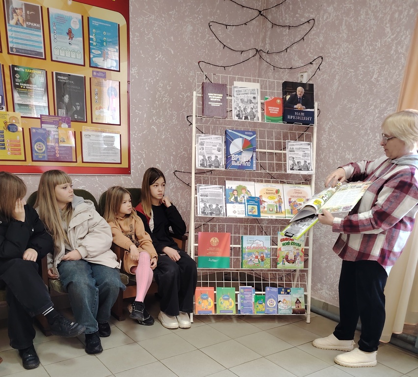 Библиотекарь Наталья Егорова познакомила ребят с историей праздника, рассказала об истории создания Конституции Республики Беларусь, её структуре, основных правах и обязанностях граждан нашей страны. Школьники отвечали на вопросы правовой викторины, познакомились с книгами, представленными на выставке.