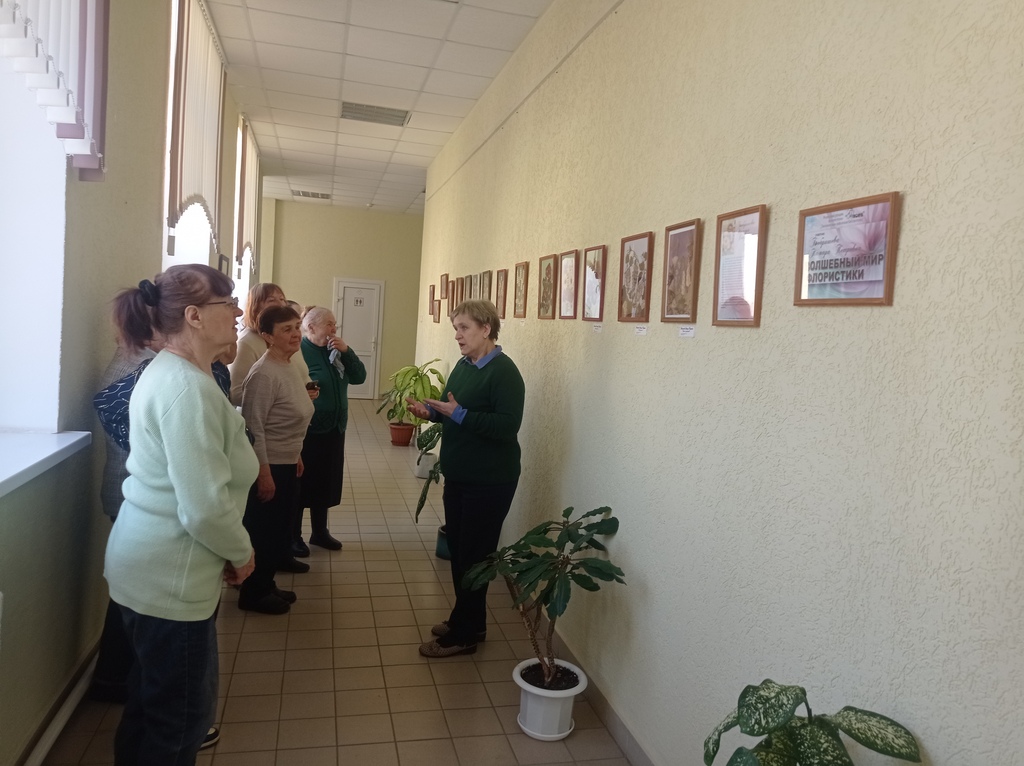 Присутствующие узнали много интересного об истории и традициях дарения и принятия цветочных букетов, об особенностях цветочного этикета в разных странах, ответили на вопросы тематической викторины, на практическом занятии пробовали  составлять букеты. В рамках заседания состоялась презентация выставки флористических работ участницы студии Тамары Бобришевой «Волшебный мир флористики».