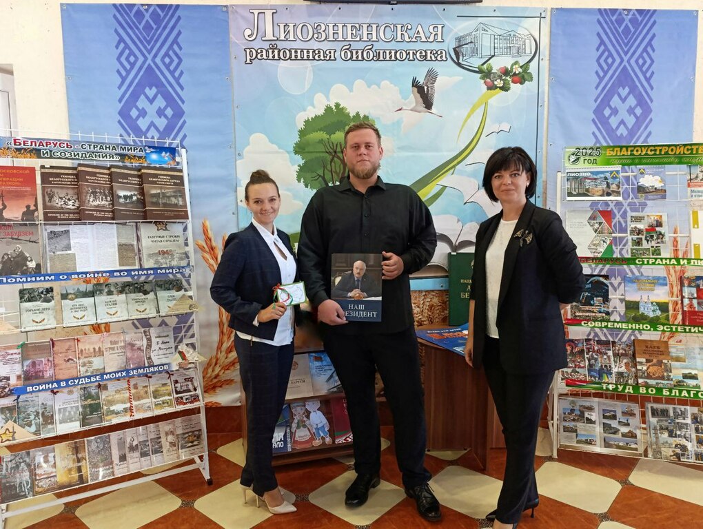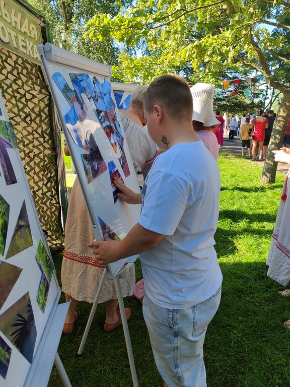 3 июля на районном празднике, посвящённом Дню Независимости Республики Беларусь и 81-й годовщине освобождения Беларуси от немецко-фашистских захватчиков, сотрудники Лиозненской центральной районной библиотеки представили тематическую площадку «Под мирным небом Беларуси».