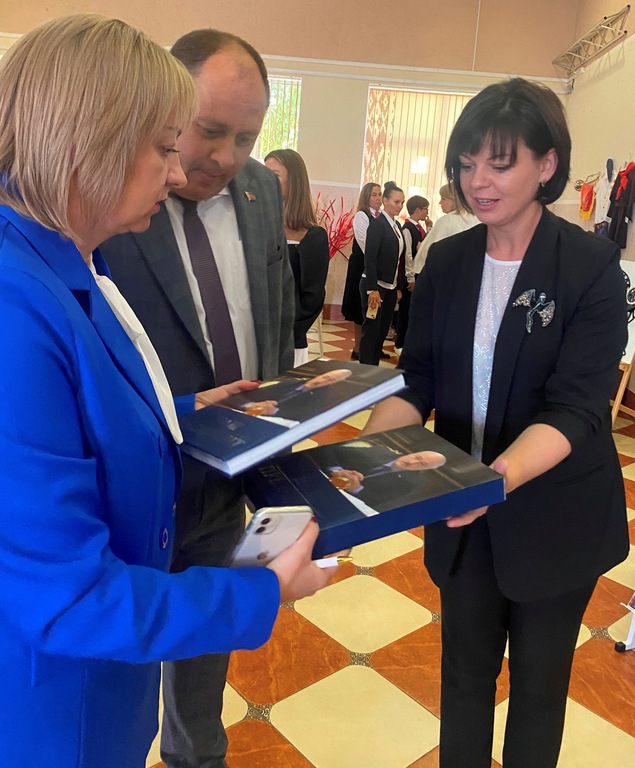 Центральная районная библиотека представила книжные выставки "Наш Президент", "Беларусь – страна мира и созидания", "2025 – Год благоустройства". Директор ЦБС Марина Бондарева познакомила участников конференции с новинками белорусских издательств, рассказывающими об истории и современном развитии Беларуси, её символах, достижениях страны в политической, экономической и социальной сферах. Особый интерес у присутствующих вызвало документально-биографическое издание "Наш Президент".